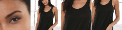 - High-low back drape; Easy, drapey fit