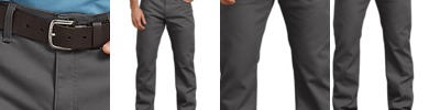 8.2 oz. Mechanical stretch twill, 65% polyester, 35% cotton; Moisture wicking, stain resistant, wrinkle resistant ; Flex fabric for comfort and ease of movement; Sits comfortably at the waist; Slightly tapered legs; Hook-and-eye closure, brass zipper; Welt back pockets; Signature long tunnel belt loops;