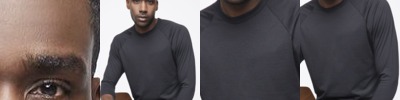 - Coverstitched neck, shoulders, armholes, cuffs and bottom band