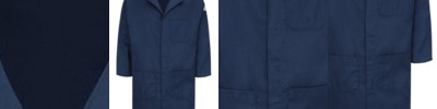 6.9 oz., 100% cotton twill; chino style stitched pockets with rivets; gun metal eyelets secure 35" self fabric ties; top centre pocket; neckband with buckle and adjustable snap button fastening; 34"L x 28"W; Oeko-Tex® Standard 100 certified; WRAP certified;