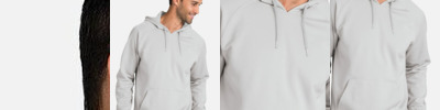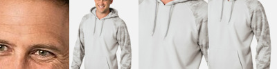 - Three-piece hood with elastic binding at opening