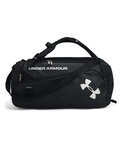 100% polyester; UA Storm technology delivers an element-battling, highly water-resistant finish; Tough, abrasion-resistant bottom and side panels; Two large, front zippered pockets; Removable, padded, HeatGear® shoulder strap for total comfort; Padded top grab handle; Large vented pocket for laundry, shoes and internal slip pockets; Embroidered UA label on side; Heat-seal UA logo on front; 29.5" x 14.5" x 14.1";