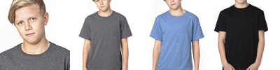 - 50/50 combed ring spun cotton/poly (Heathers, Frosts)