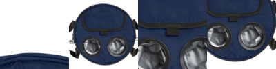 Shoe pocket on one end, zippered pocket on other end and front slash pocket