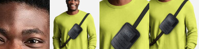 - Self-fabric closure with antique brass slider and tuck-in strap