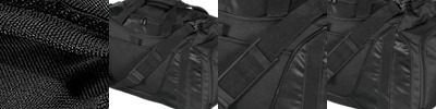 - 600D printed poly; 600D shadow ripstop poly/1,680D poly (Black/Silver)