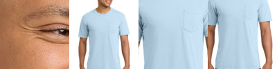 5.3-ounce, 100% US cotton 50/50 cotton/poly (Graphite Heather, Safety Green) 90/10 cotton/poly (Sport Grey) Taped neck and shoulders Recycled, high-performing black tear-away label Non-topstitched, classic width, rib collar Left chest pocket Classic fit, seamless body