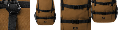 100% ballistic poly Two front pockets Main compartment has a water bottle holder and mesh organizer Fully adjustable shoulder straps Side zipper allows quick access to pack interior Metal OGIO zipper pulls with webbing High-density O heat transfer Laptop sleeve: 12'h x 9'w; fits most 13' laptops Dimensions: 16'h x 9'w x 5.7'd Capacity: 1,098 cu.in./18 L Weight: 1.5 lbs./0.66 kg Note: Bags not intended for use by children 12 and under.