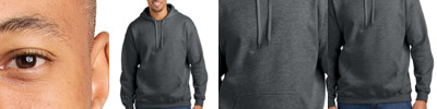 8.4-ounce, 80/20 ring spun cotton/poly 75/25 ring spun cotton/poly (Ring Spun Sport Grey) 50/50 ring spun cotton/poly (Dark Heather) 100% ring spun cotton face yarn Two-piece dyed-to-match jersey fabric-lined hood Double-needle hem and topstitching on outside of hood seam Dyed-to-match flat drawcords Dropped shoulder 1x1 rib knit with spandex cuffs and bottom band Tubular body Classic fit Recycled, tear-away label Select colors at XS and select colors up to 5XL
