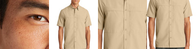 Sun and moisture are no problem for this versatile, lightweight, highly breathable shirt. Relaxed styling makes it perfect for outdoor or indoor wear. 2.2-ounce, 100% polyester poplin 2.5-ounce, 100% polyester poplin (White) Moisture-wicking UPF rating of 30 Hidden button-down collar Dyed-to-match buttons Two chest pockets with concealment flaps and hook and loop closures Vented back panel with mesh ventilation Rounded adjustable cuffs Roll sleeves with button tabs Straight hem with side vents