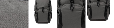 Textured poly weave Drawcord at opening to cinch closed Exterior pockets Interior organizer pockets Padded laptop compartment Metal snap buckle closure Metal OGIO zipper pulls with rubber coating Integrated padded luggage trolley pass through on back Laptop sleeve: 16.3'h x 12.5'w; fits most 15' laptops Dimensions: 18'h x 12.5'w x 6.2'd Capacity: 976 cu.in./16 L Weight: 1.5 lbs./0.68 kg Note: Bags not intended for use by children 12 and under.