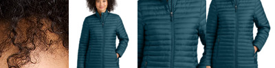 Designed with traditional quilt lines, this insulated full-zip is built for warmth and weather-resistant performance. Features include full-length interior storm flap with chin guard, exposed, molded zippers with Eddie Bauer logo pulls, elastic cuffs, zippered hand pockets and a slight drop tail hem. Includes a decoration access pocket. Packs into zippered left hand pocket. Longer length with a double zipper. Contrast Eddie Bauer heat transfer logo on right hem. Made of 100% polyester ripstop and 5.4-ounce, 100% polyester blown fill. PU coating on back of shell. Durable water-repellent (DWR) finish.