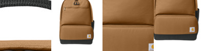 600D polyester Rain Defender ® durable water repellent (DWR) Adjustable shoulder straps with sternum buckle Cooler collapses to create extra space in main compartment Cooler compartment can be stowed away when not in use Durable lined cooler compartment for easy cleaning Separate 17' padded laptop sleeve on back panel Tricot-lined zippered pocket inside main compartment Two interior mesh slip-in pockets with pen sleeves Exterior zippered pocket Side stretch-mesh pocket Glove-friendly zipper pulls Carhartt label sewn on front Laptop dimensions: 16.5'h x 11.5'w; fits most 17' laptops Dimensions: 19'h x 13.5'w x 8.5'd Capacity: 1,537.5 cu. in./25 L Weight: 1 lb. 6 oz./612 g Note: Bags not intended for use by children 12 and under.