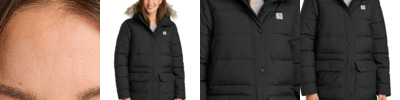 Carhartt Montana styles are inspired by the West-and built tougher than the rest. Insulated for warmth and engineered to combat wind and rain, these outerwear pieces are for cold-weather warriors who demand warmth, performance and style. 4.5-ounce, 100% nylon 100% polyester lining Blown-in insulation for extra warmth Rain Defender ® durable water repellent (DWR) Wind Fighter ® technology tames wind Carhartt label sewn on left chest Sherpa-lined fleece in upper body Mock neck collar Left chest pocket with hidden zipper Large interior utility pocket for extra storage Secure-zip lower hand pockets Adjustable drop tail hem Loose fit
