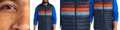 Fuego is Cotopaxi's quintessential insulation layer. Made with responsibly sourced down, these versatile performance pieces are the ones we turn to year round. Plus, they stand out from the crowd with retro-inspired striping. 100% 20D recycled ripstop nylon with durable water-repellent (DWR) finish 800-fill responsibly sourced down insulation Zip-through collar Locker loop Exposed Vislon ® zipper with zipper garage at neck Two interior drop-in pockets Interior zippered pocket Zippered hand pockets Elastic armhole binding Adjustable locking drawcord hem Stows in interior zippered pocket Contrast Cotopaxi heat transfer logo on left chest Contrast GEAR FOR GOOD heat transfer on right back shoulder