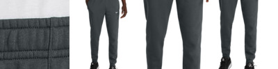 Whether you're running laps or running errands, this Nike jogger combines warmth, style and performance. 8.2-ounce, 80/20 cotton/polyester Interior dyed-to-match drawstrings at waist Two front pockets One back pocket with snap button Ribbed cuffs Embroidered Swoosh logo on left leg