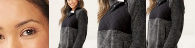 FZ06 Women's Quilted Fuzzy Fleece Snap Placket Pullover