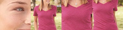 V-neck silhouette is a flattering choice in soft combed cotton.