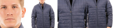 7.5 oz., 100% polyester multicolored shag; Unconcealed nylon zipper; Stand-up self-collar; Sideseam welt pockets; Single needle stitched throughout; Tear away label;
